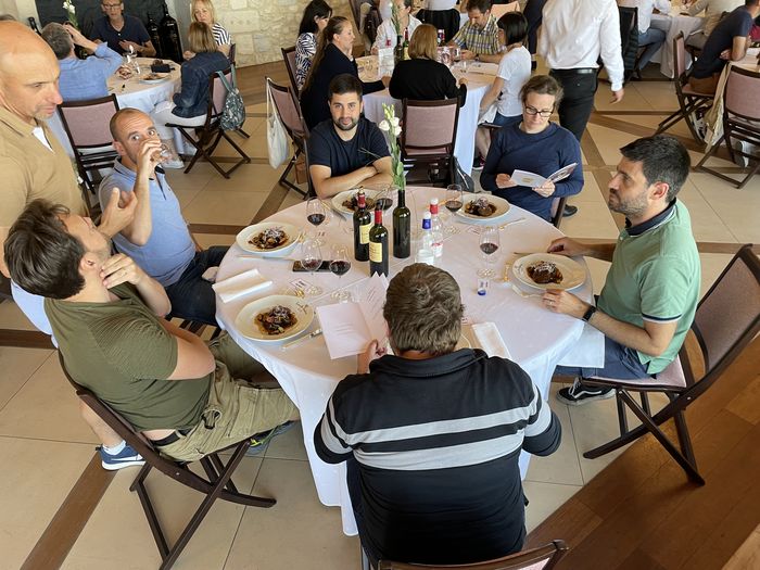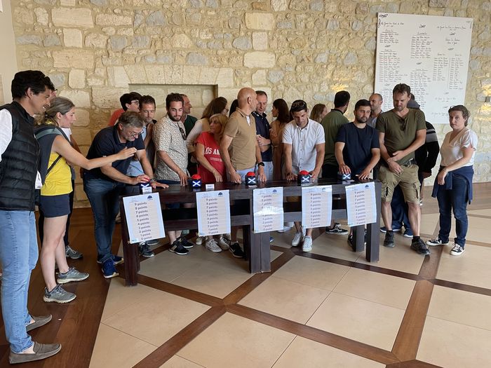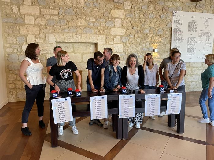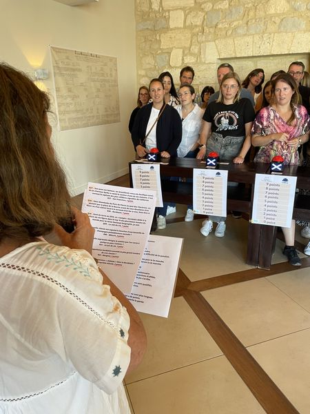 Les équipes ont pu affuter leurs connaissances du vin avec le « question pour un champion » et la visite commentée des chais.